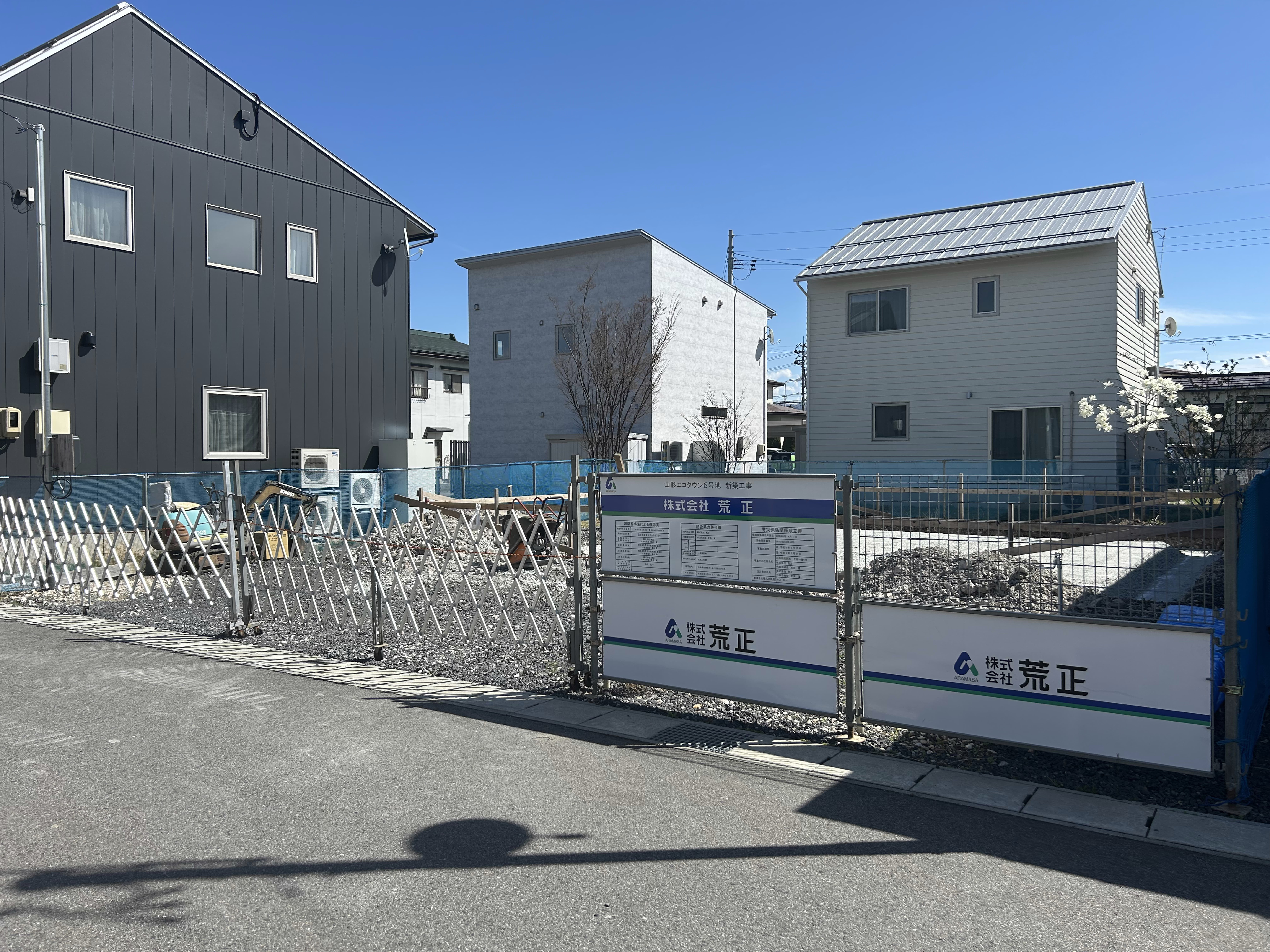 「山形エコタウン前明石」6号地の新築建売住宅が着工しました。夏頃の完成予定です。他残り2区画(うち1区画は建売建築済)です。ご興味のある方はお早めにどうぞ!